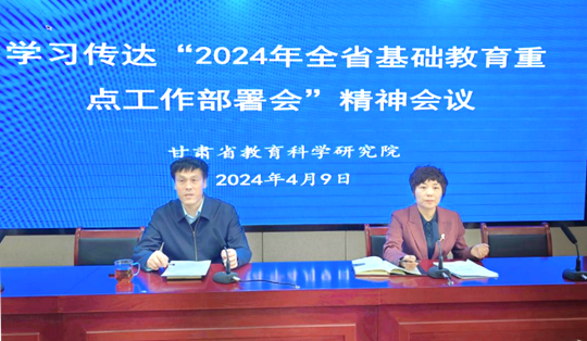 4月9日,甘肃省教科院召开专题会议,学习传达2024年度全省基础教育重点工作部署会精神。院领导班子成员及全体干部职工参加会议。会议由党委书记、院长赵洪涛主持。