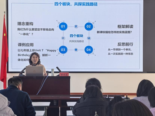 甘肃省教科院兼职教研员,甘肃省特级教师董晓霞老师开展题为“初中英语听说教学中“教-学-评”一体化设计与实施”的专题讲座,围绕新课标理念、新教材英语听说教学的核心方向、听说教学“教学评一体化”等关键问题,结合理论阐释与实践案例,为英语听说教学改革提供了系统化的解决方案参考。