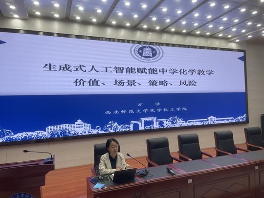 培训会上,西北师范大学张晓燕教授围绕“AI赋能教育教学提质增效”作专题报告,为化学教学与信息技术深度融合提供全新思路;陕西省咸阳市实验中学葛秋萍老师以“精准分析、洞悉考向、科学施教”为题,深入解读高考化学命题趋势与高效备考策略,为一线教学提供精准指导;兰州二中吕晓燕老师聚焦高中化学“生发”课堂实践,结合典型教学案例,分享课堂教学改革的先进经验与实施路径;西北师范大学方洁教授就“生成式人工智能赋能中学化学教学”作专题分享,进一步拓宽了参训教师的数字化教学视野,为化学课堂创新注入新动能。另外,参训教师现场观摩了西北师大附中刘剑老师、兰州五十七中周妍老师以“芳香烃”为主题的优质示范课。两节课立足化学核心素养,突出学生主体地位,展现了扎实的教学功底与创新的教学理念。观摩结束后,与会教师与专家开展互动交流,在研讨互鉴中深化教学认知。